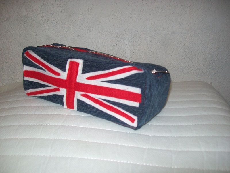 Abaixo um estojo, que minha sobrinha queria com a bandeira da Inglaterra, reaproveitando um velho jeans, bom essa não dá para repetir exatamente igual, pois esse jeans só tinha um pedaço. Ficou muito linda.